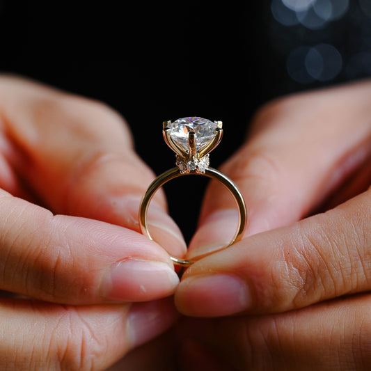 Solid Gold Hidden Halo Oval Cut Moissanite Engagement Ring