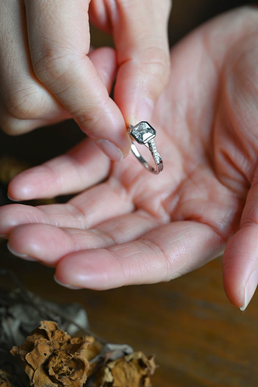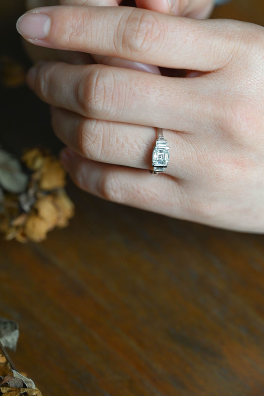 Solid Gold Asscher Cut Moissanite Engagement Ring, Gift for Women