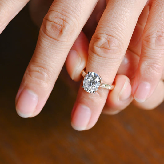 Solid Gold 2.5mm Width Oval Cut Moissanite Engagement Ring