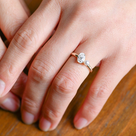Solid Gold Toi Et Moi Oval Cut Moissanite & Pearl Engagement Ring