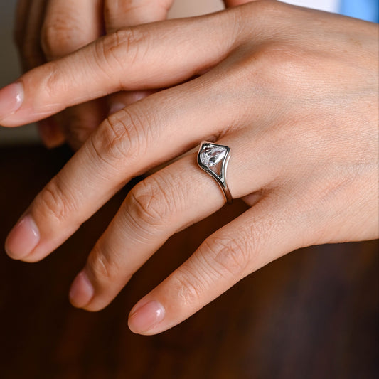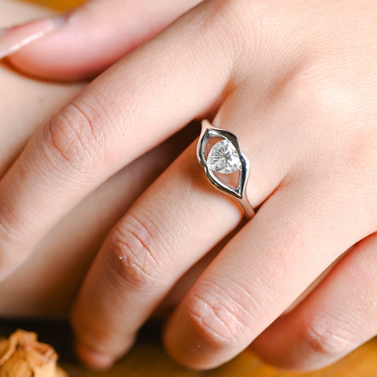 Solid Gold Solitaire Lips Heart Cut Moissanite Engagement Ring