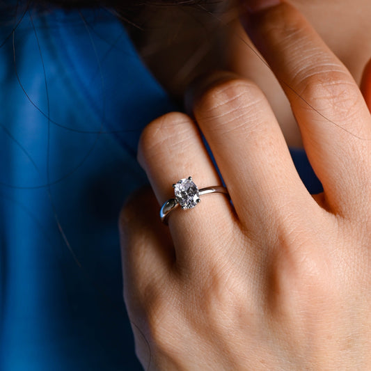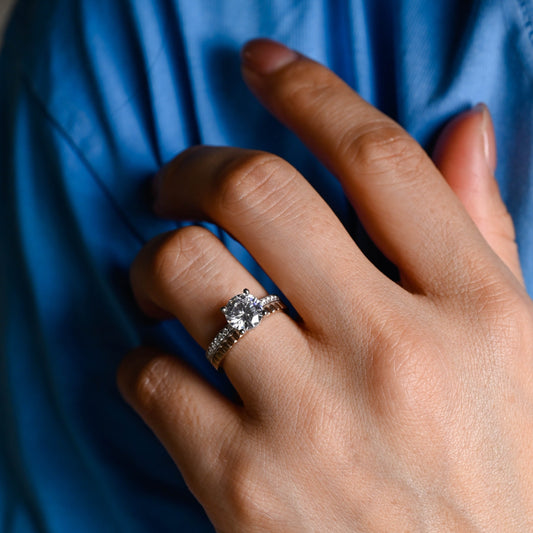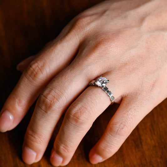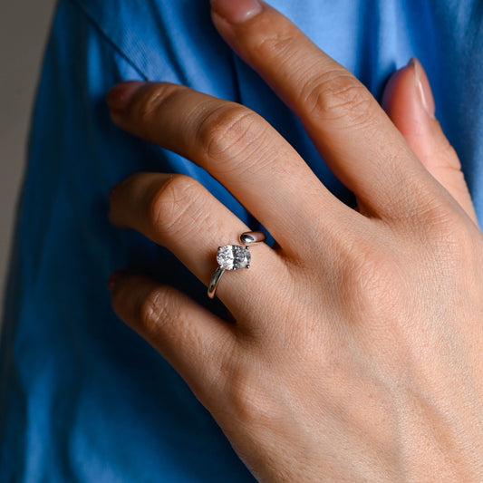 East to West Solid Gold Off Side Oval Cut Moissanite Engagement Ring