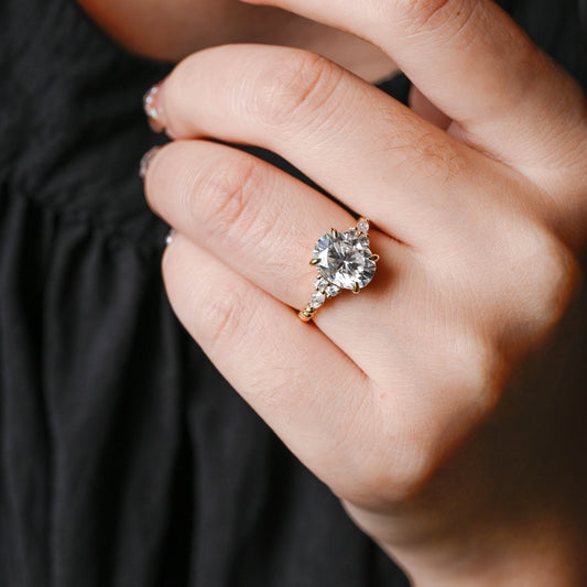 Solid Gold Side Cluster Twisted Rope Oval Cut Moissanite Engagement Ring