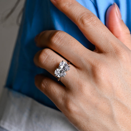 Solid Gold Toi et Moi Pear Cut Moissanite Ring