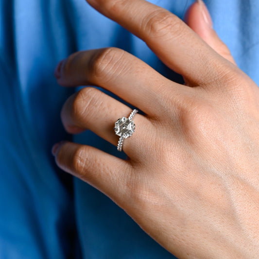 Solid Gold Hexagon Cut Moissanite Engagement Ring, Promise Ring, Proposal Ring, Gift for Woman, Wife
