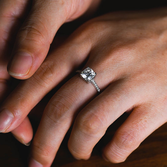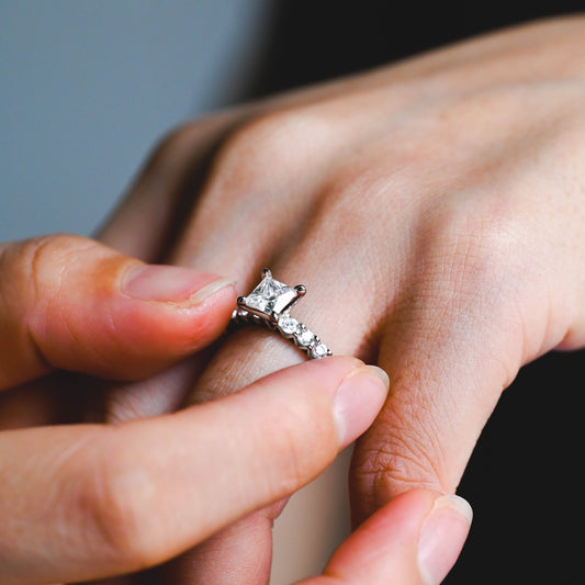 Solid Gold 2.5mm Width Princess Cut Moissanite Engagement Ring