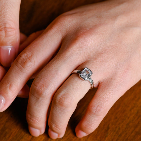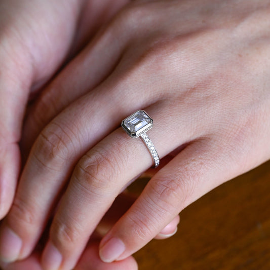 Solid Gold Bezel Emerald Cut Moissanite Engagement Ring