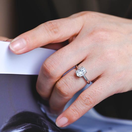 Solid Gold Solitaire Oval Cut Moissanite Engagement Ring