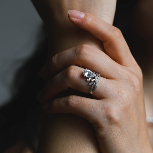 Solid Gold Cathedral Oval Cut Moissanite Engagement Ring
