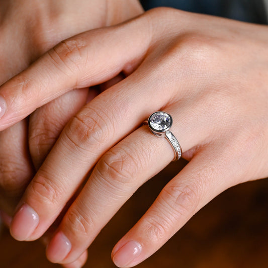 Solid Gold Bezel Round Cut Moissanite Engagement Ring