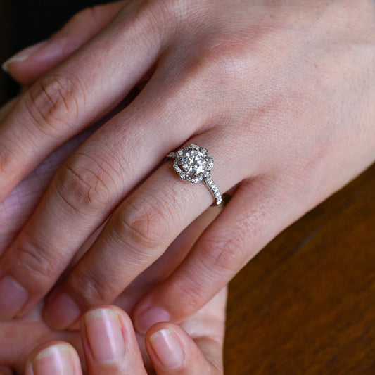 Solid Gold Floral Halo Round Cut Moissanite Engagement Ring