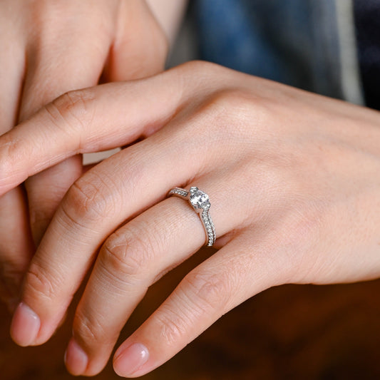 Solid Gold Pave Cushion Cut Moissanite Engagement Ring, Gift for Women