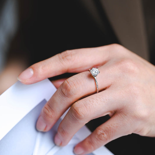 Solid Gold Solitaire Round Cut Moissanite Engagement Ring