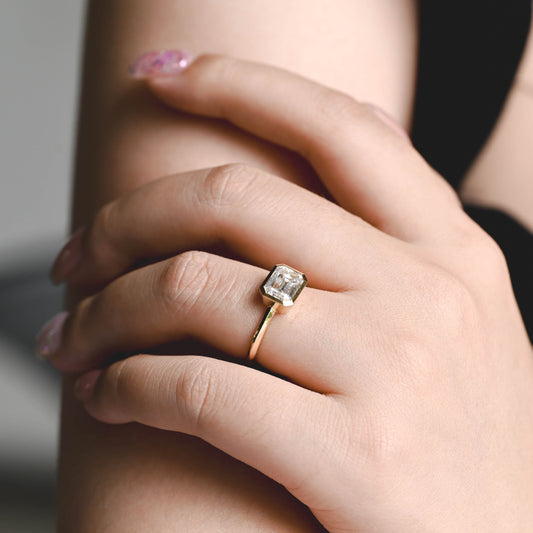 CausYou Solid Gold East West Emerald Cut Moissanite Engagement Ring Bezel Ring, Promise Ring, Proposal Ring, Gift for Woman, Wife