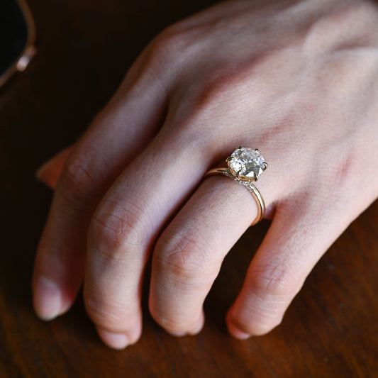 Solid Gold Hidden Halo Round Moissanite Engagement Ring