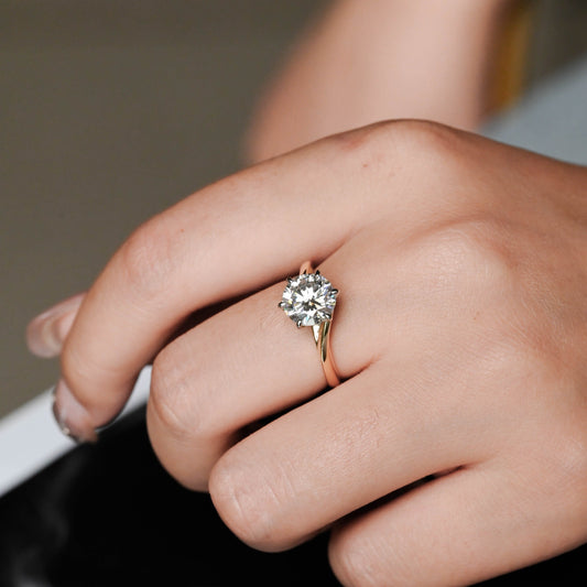 Solid Gold Two Tone Round Moissanite Engagement Ring, Solitaire Bypass Ring