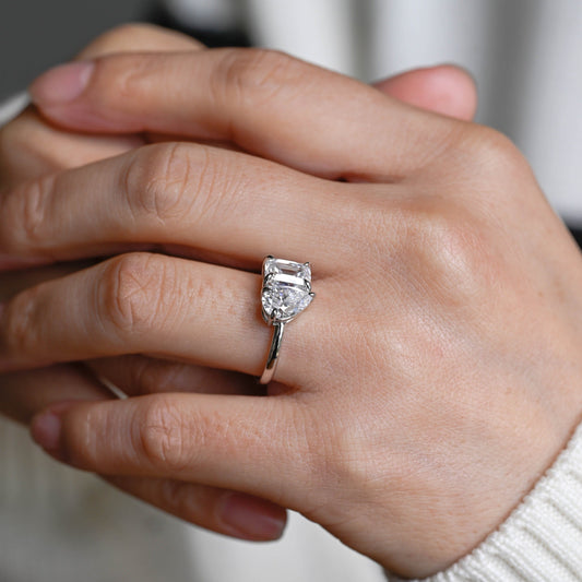 Solid Gold Toi Et Moi Ring, Pear & Emerald Cut Moissanite Engagement Ring, Promise Ring