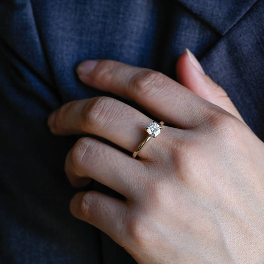 Solid Gold Hidden Halo Cushion Cut Moissanite Engagement Ring
