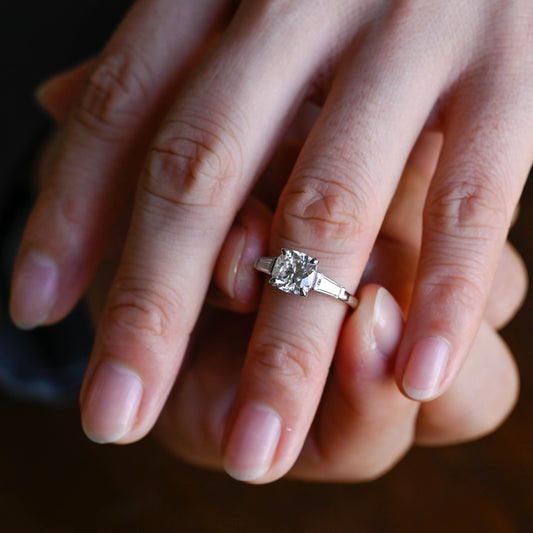 Solid Gold Three Stone Cushion Cut Moissanite Engagement Ring