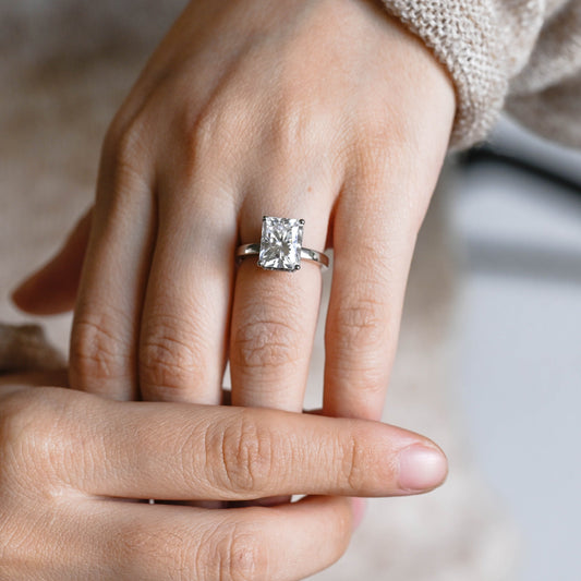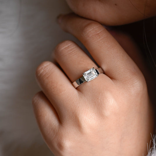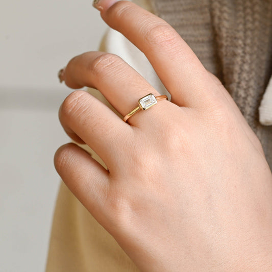 Solid Gold Solitaire Bezel Emerald Cut Moissanite Engagement Ring