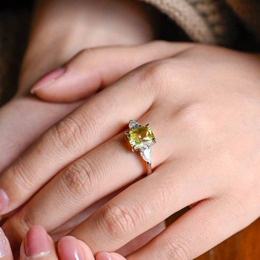 Solid Gold Lab Grown Yellow Sapphire Radiant Cut Engagement Ring