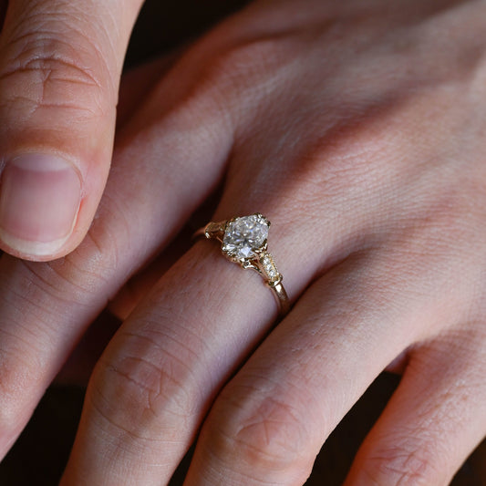 Solid Gold Vintage Oval Cut Moissanite Engagement Ring