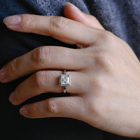 Solid Gold Halo Princess Cut Moissanite Engagement Ring