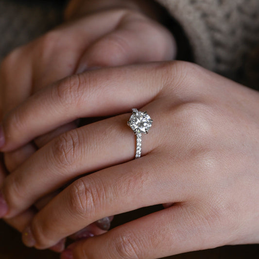 Solid Gold Full Eternity Round Moissanite Engagement Ring Hidden Halo