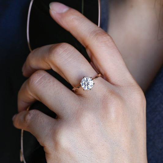 Solid Gold Twisted Band Round Cut Moissanite Engagement Ring, Solitaire Ring