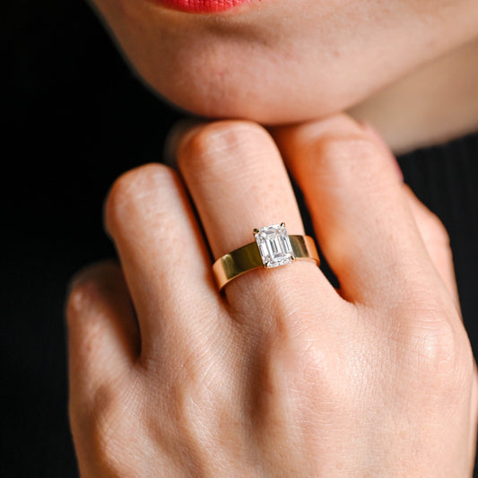 Solid Gold 5mm Width Emerald Cut Moissanite Engagement Ring