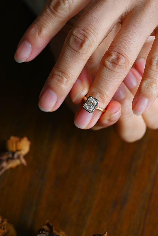 Solid Gold Solitaire Bezel Emerald Cut Moissanite Engagement Ring