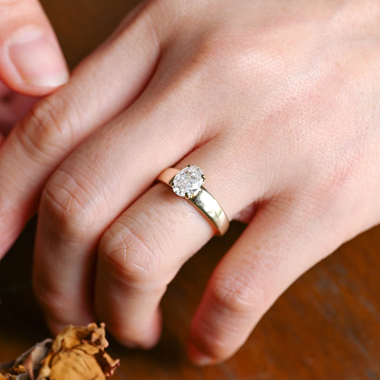 Solid Gold 5mm Width Chunky Band Solitaire Oval Cut Moissanite Engagement Ring
