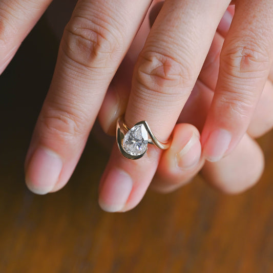 Solid Gold Bypass Hidden Halo Pear Cut Moissanite Engagement Ring