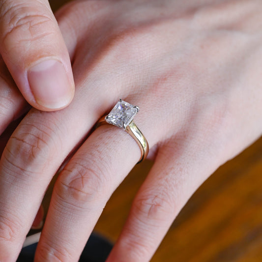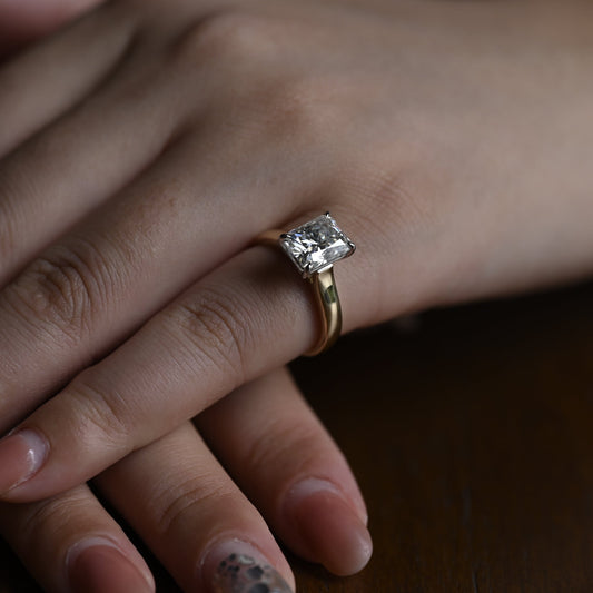 Solid Gold 3mm Width Solitaire Two Tone Radiant Cut Moissanite Engagement Ring