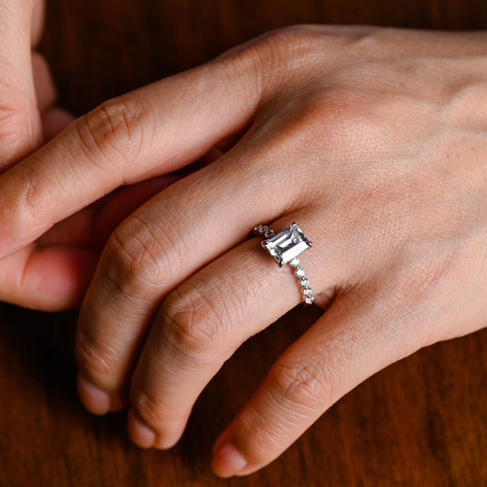 Solid Gold Hidden Halo Emerald Cut Moissanite Engagement Ring