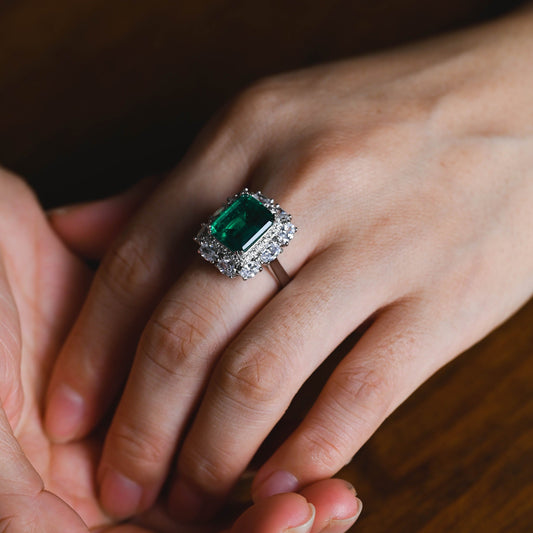 Solid Gold Lab Grown Emerald Engagement Ring, Promise Ring, Proposal Ring