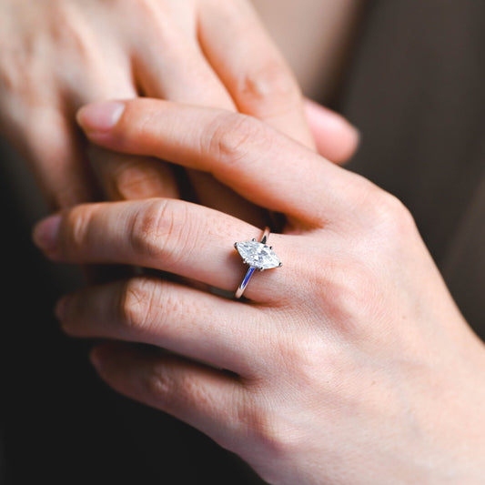 CausYou Solid Gold Marquise Cut Moissanite Engagement Ring, Solitarie Promise Ring