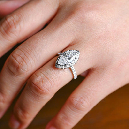 Solid Gold Halo Marquise Cut Moissanite Engagement Ring