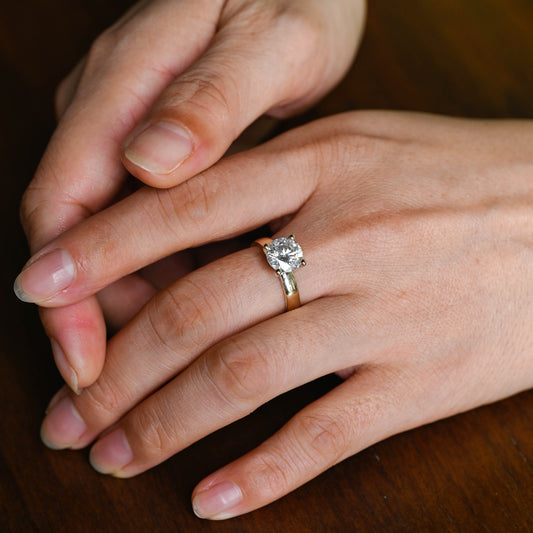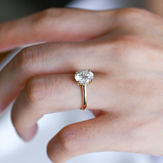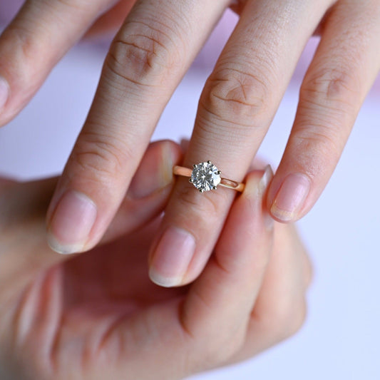 Solid Gold Solitaire 3.5mm Width Round Cut Moissanite Engagement Ring