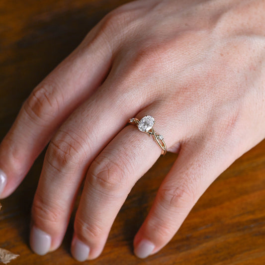 Solid Gold Nature Inspired Leafy Oval Cut Moissanite Engagement Ring
