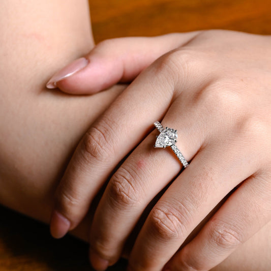 Solid Gold Pave Pear Cut Moissanite Engagement Ring