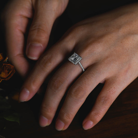Solid Gold Halo Princess Cut Moissanite Engagement Ring