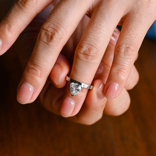 CausYou Solid Gold Off Side Trilliant Cut Moissanite Engagement Ring, Solitaire Promise Ring, Promise Ring, Proposal Ring, Gift for Woman, Wife