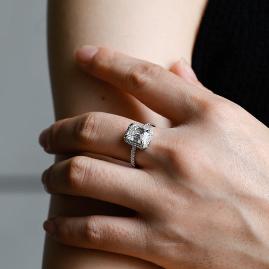 Solid Gold Emerald Cut Moissanite Engagement Ring, Promise Ring with Halo, Gift for Women Wife