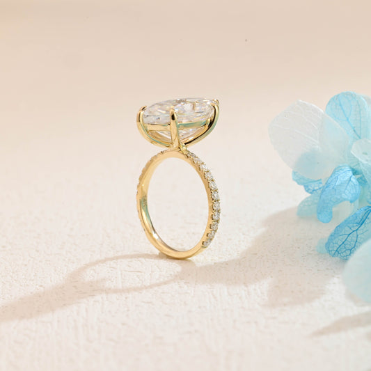 Solid Gold 2.8mm Pave Hidden Halo Radiant Cut Moissanite Engagement Ring