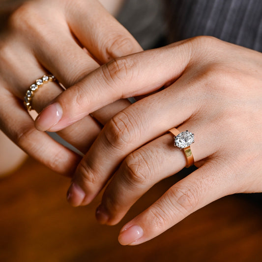 Solid Gold Solitaire Two Tone Oval Cut Moissanite Engagement Ring, 3mm Width Wide Band Ring