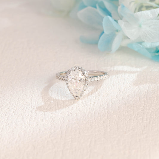 Solid Gold Pear Cut Moissanite Engagement Ring Halo Ring