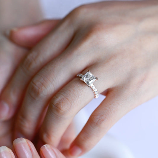 Solid Gold 2.5mm Width Princess Cut Moissanite Engagement Ring