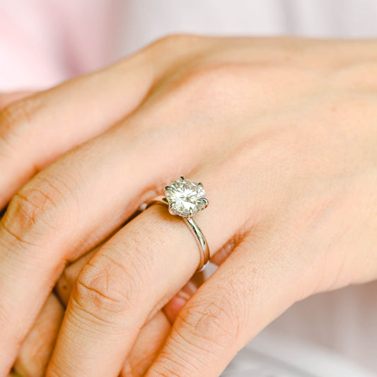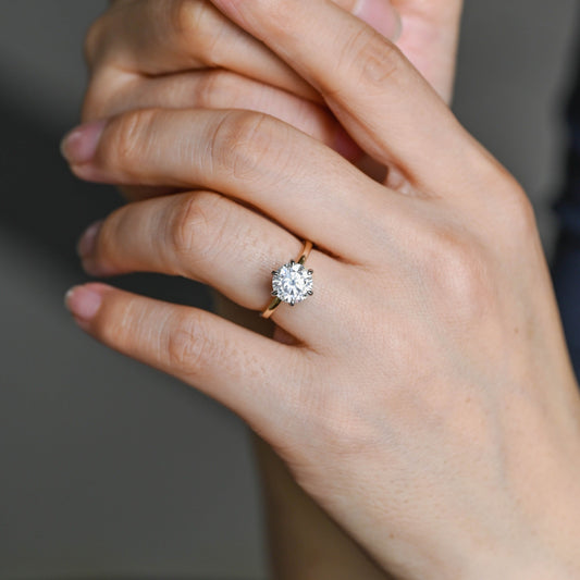 Solid Gold Two Tone Round Moissanite Engagement Ring