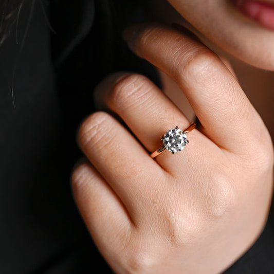 Solid Gold Two Tone Round Moissanite Engagement Ring, Solitaire Ring
